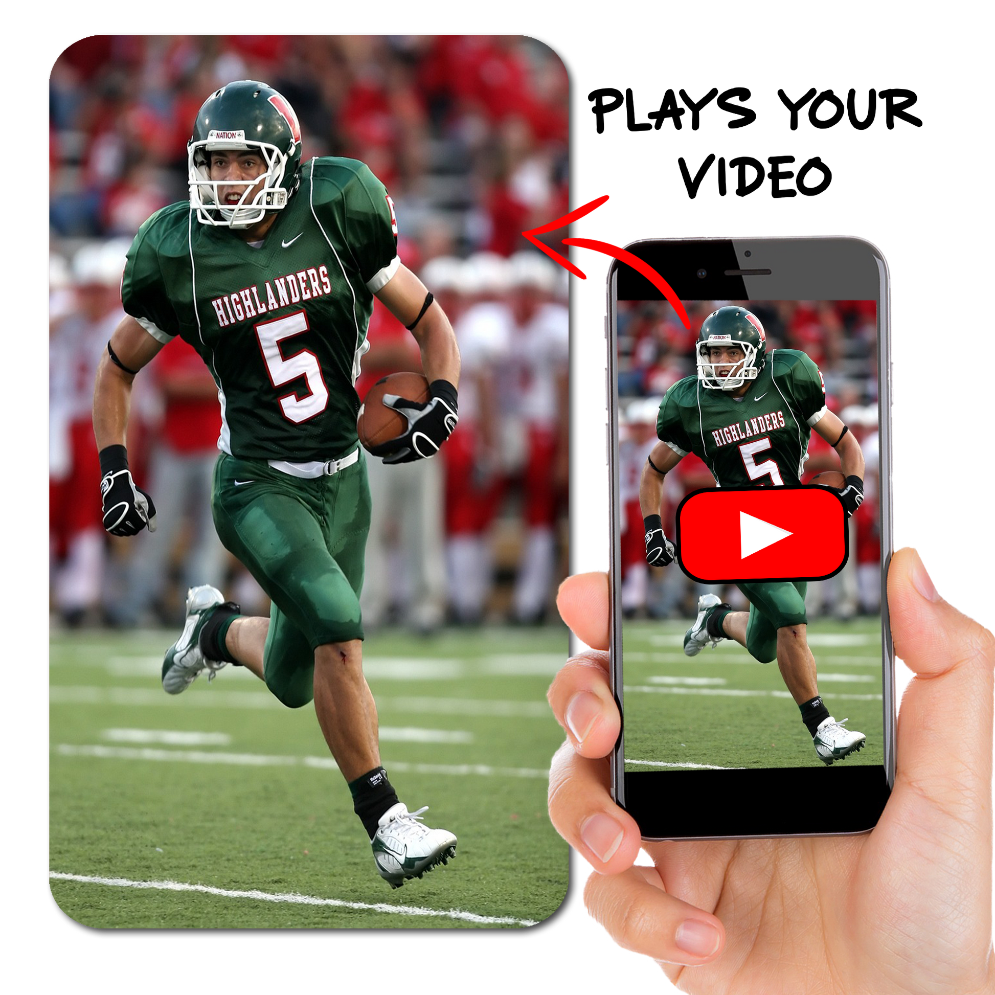 Handmade with care in Renovo, PA, our football cards are more than collectibles—they’re personalized keepsakes that capture your most cherished memories. With the option to feature two photos on the front and back, you can even upload a personal video after delivery for a one-of-a-kind, interactive experience