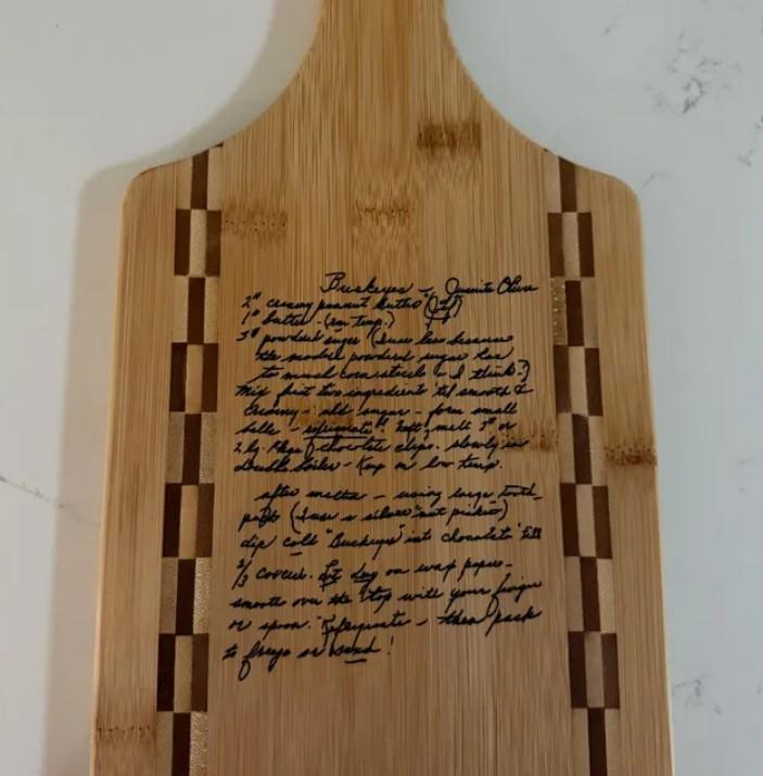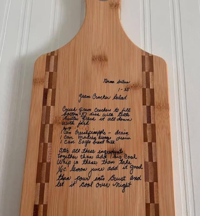 "These boards turned out beautiful exceeded my expectations. My father in law passed away unexpectedly and his handwritting spaghetti recipe was found in a drawer. This memorized it beautifully"